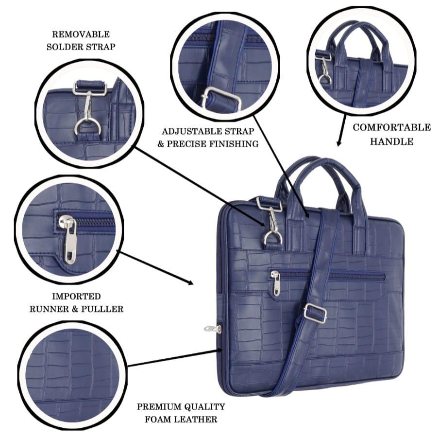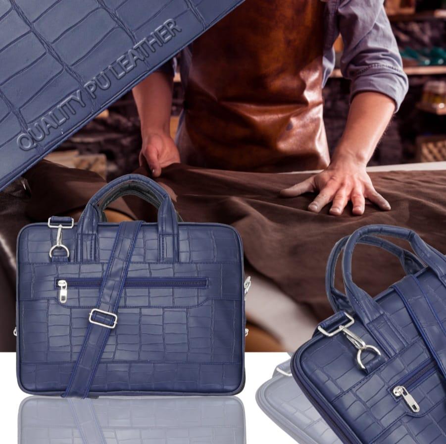 Premium PU Leather Laptop Bag. Croc-Texture, Removable Strap
